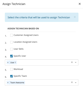 - Customer Assigned Users – assigns any technician to the ticket that is designated as an assigned user for that specific customer.