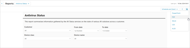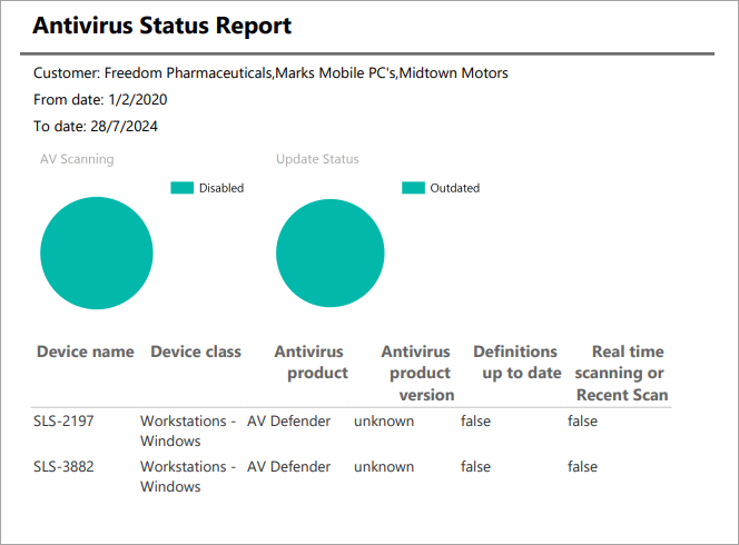 The Antivirus Status report provides an overview of the current state of antivirus protection across one or more devices. Its goal is to help IT administrators, cybersecurity teams, or individual users monitor the effectiveness of their antivirus software and identify potential vulnerabilities or unresolved issues.