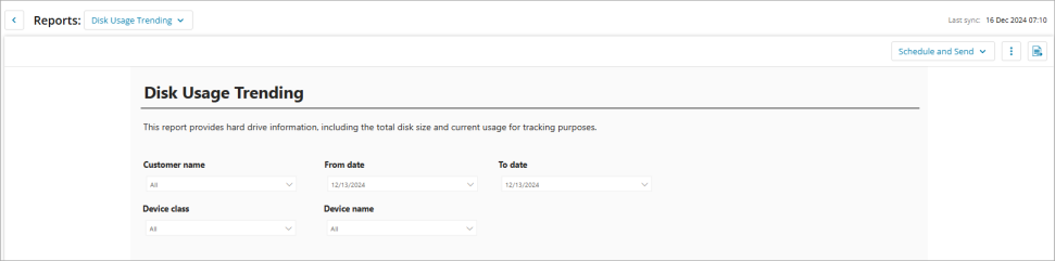 A Disk Usage Trending report provides insights into the historical and current disk space usage on systems or servers over a specific time period. It helps you track trends in storage consumption, identify patterns, and forecast future disk space requirements.