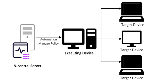 A peer-to-peer remote execution policy is an Automation Manager Policy that is run on an executing device that is a different computer from the affected target device (or devices).