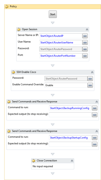 This Automation Policy runs a backup of the Cisco router running-config and startup-config to the FTP server.