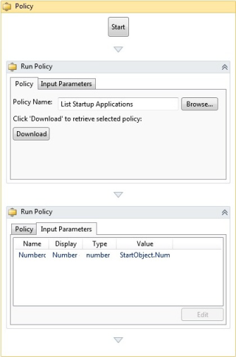 This Automation Policy has nested the List Startup Applications and List Top CPU-MEM Processes policies. For more information on each nested policy, see: