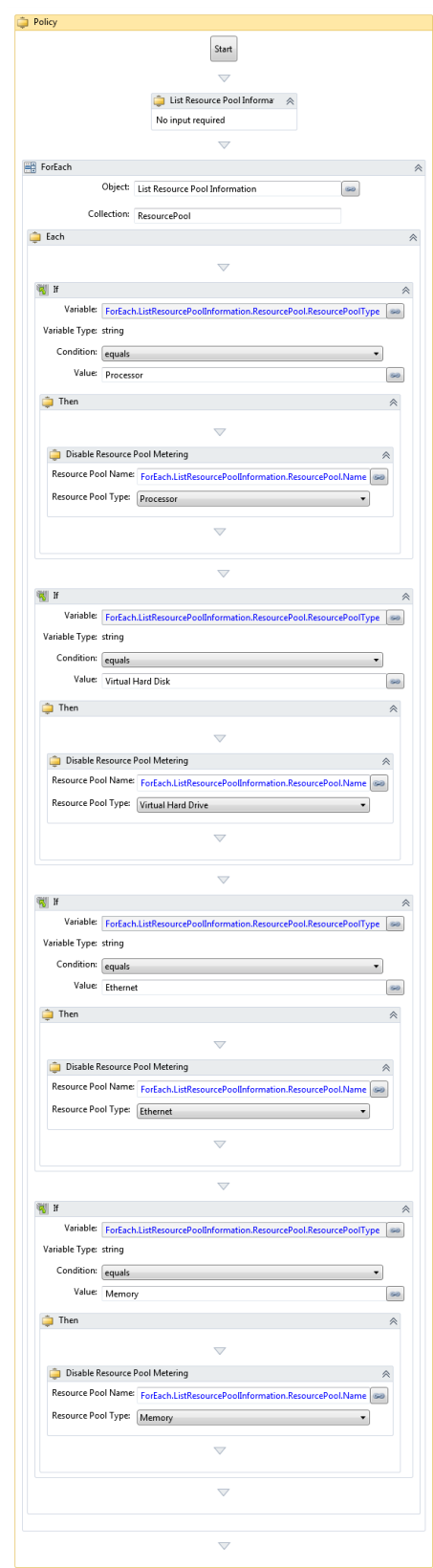This Automation Policy disables the Resource Pool Metering on all resource pools on Hyper-V 2012 Server.