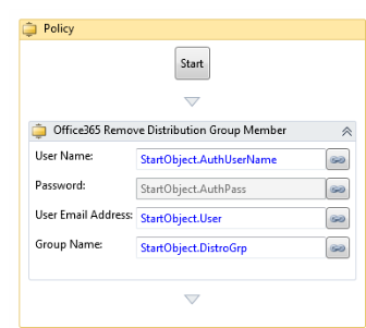 This Automation Policy removes a user from a Microsoft Office 365 distribution group.