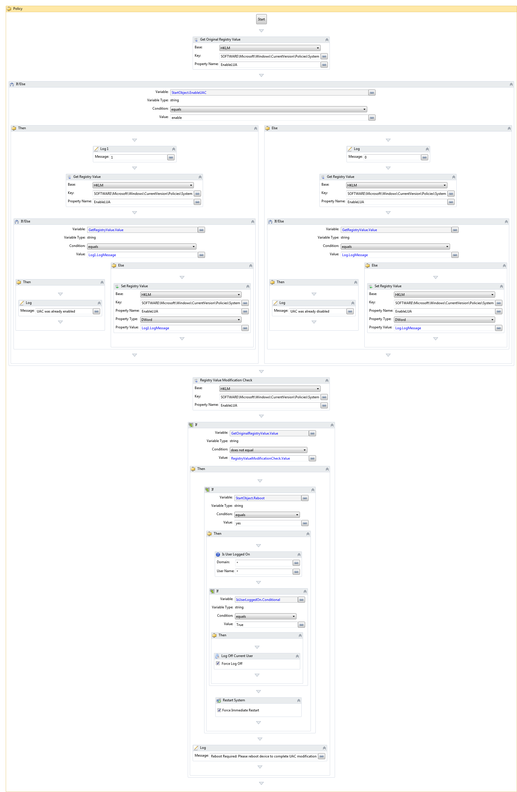 | Quick Description | This automation policy enables or disables User Access Control (UAC) on the device. |