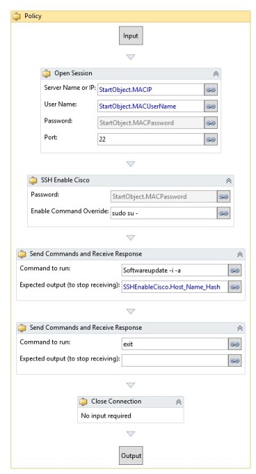 Ensuring macOS device are up-to-date often represents a manual and time-consuming task. By connecting to the macOS device through SSH, this automation policy installs all available updates on targeted macOS devices. By using the softwareupdate command with the –install and –all arguments, all updates that are applicable software updates will be installed. This automation policy requires admin authentication to successfully install software updates.