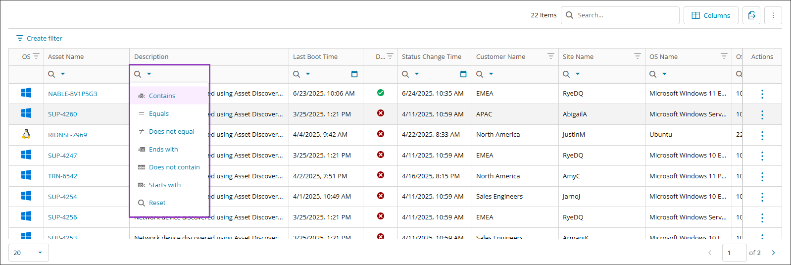 Make your column searches more powerful using operators such as Contains, Starts with, and Ends with to refine your results.