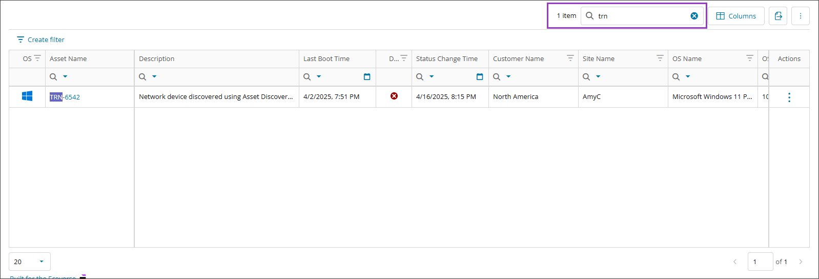 - Enter your search term. The table filters to display search results automatically after you enter a minimum of 3 characters.