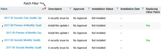 - In the Patches column, click the filter icon(
