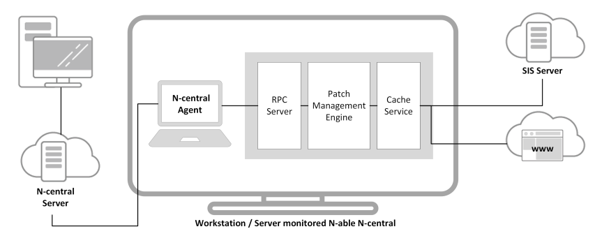 With N-able N-central 12.2 a new patch engine was deployed that can be independently updated from the N-able N-central release cycle. The patch management engine communicates the N-able N-central server through the agent.