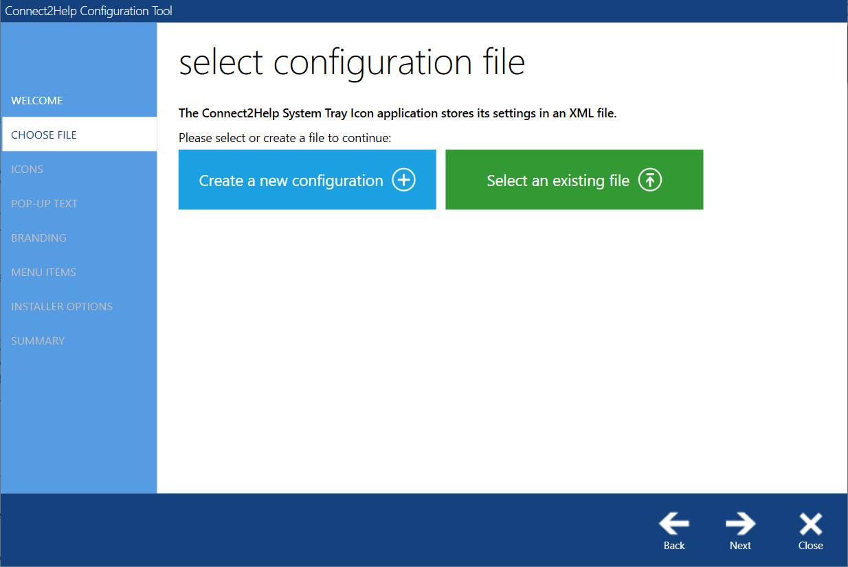 The configuration tool walks you through creating the file that will become the System Tray tool.