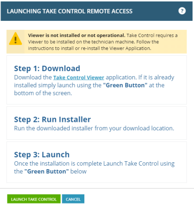 If this is the first time connecting remotely to the device, N-able N-central will prompt you to download the control client to the device.
