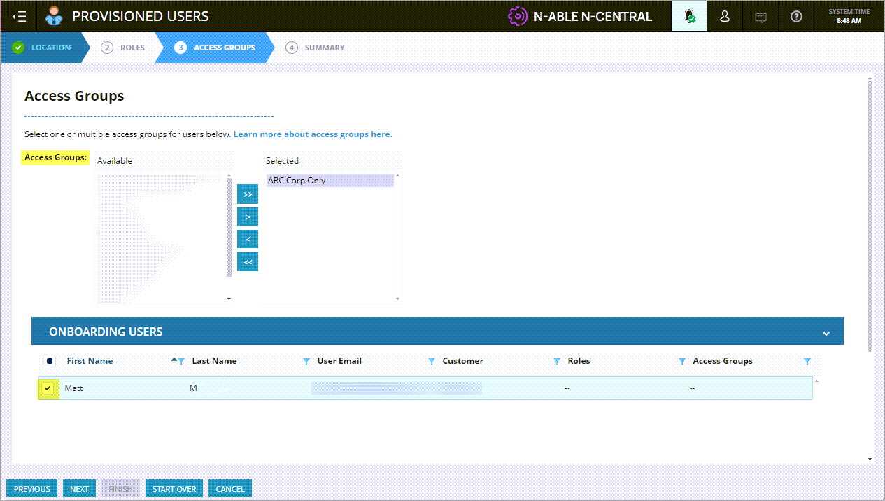- Select the access group and then select the users to apply these to in Onboarding Users.