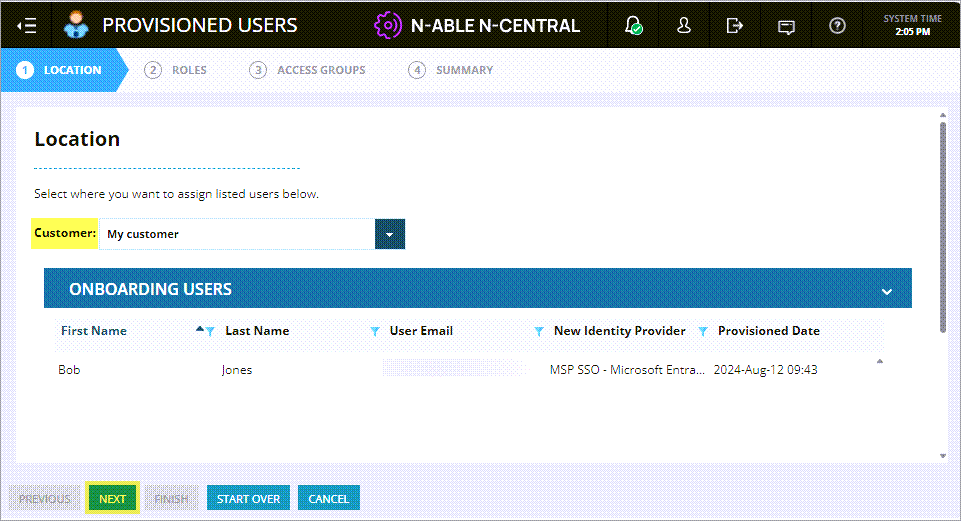Users that already had an N-central account with roles and access groups assigned and were migrated to Entra ID for authentication when they were added to the Entra enterprise application.