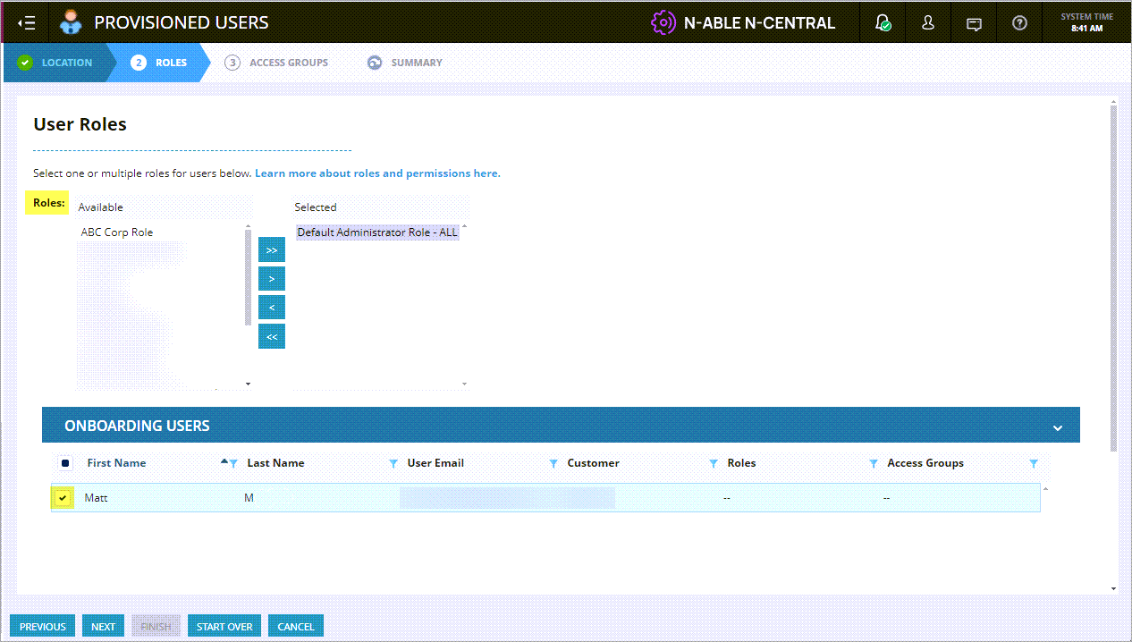 - Select the User Roles and then choose the users to apply these to in Onboarding Users.