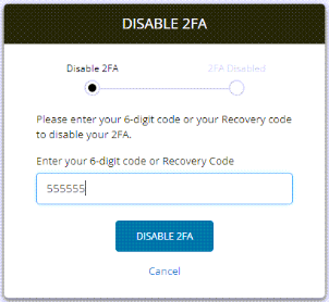 Enter your 6-digit code or the recovery code your received when you enabled 2FA.