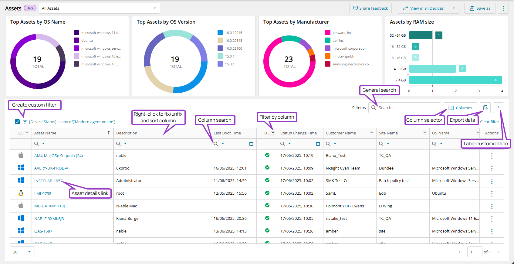 Asset Name: The unique identifier assigned to an asset, enabling efficient tracking, management, and troubleshooting. You can update this information within the classic platform (N-central or N-sight).