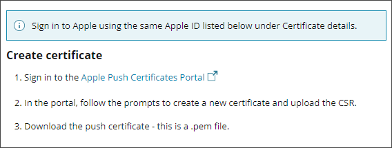 1. Select the Apple Push Certificates Portal link to create a certificate: