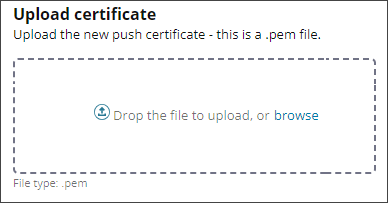 1. Drag and drop the Apple Push Notification certificate (.pem) file into the main window or use browse to navigate to the file and select it.