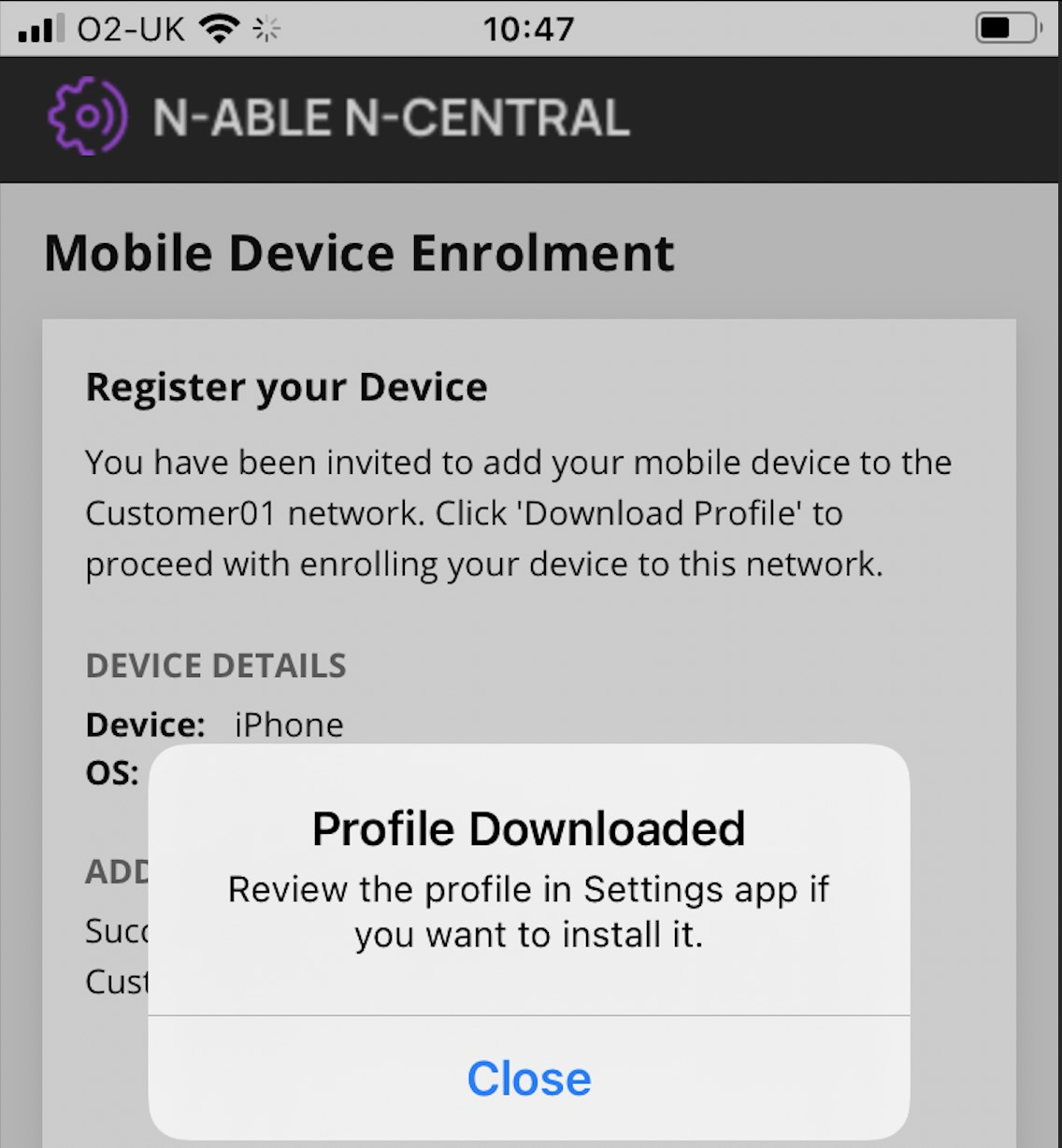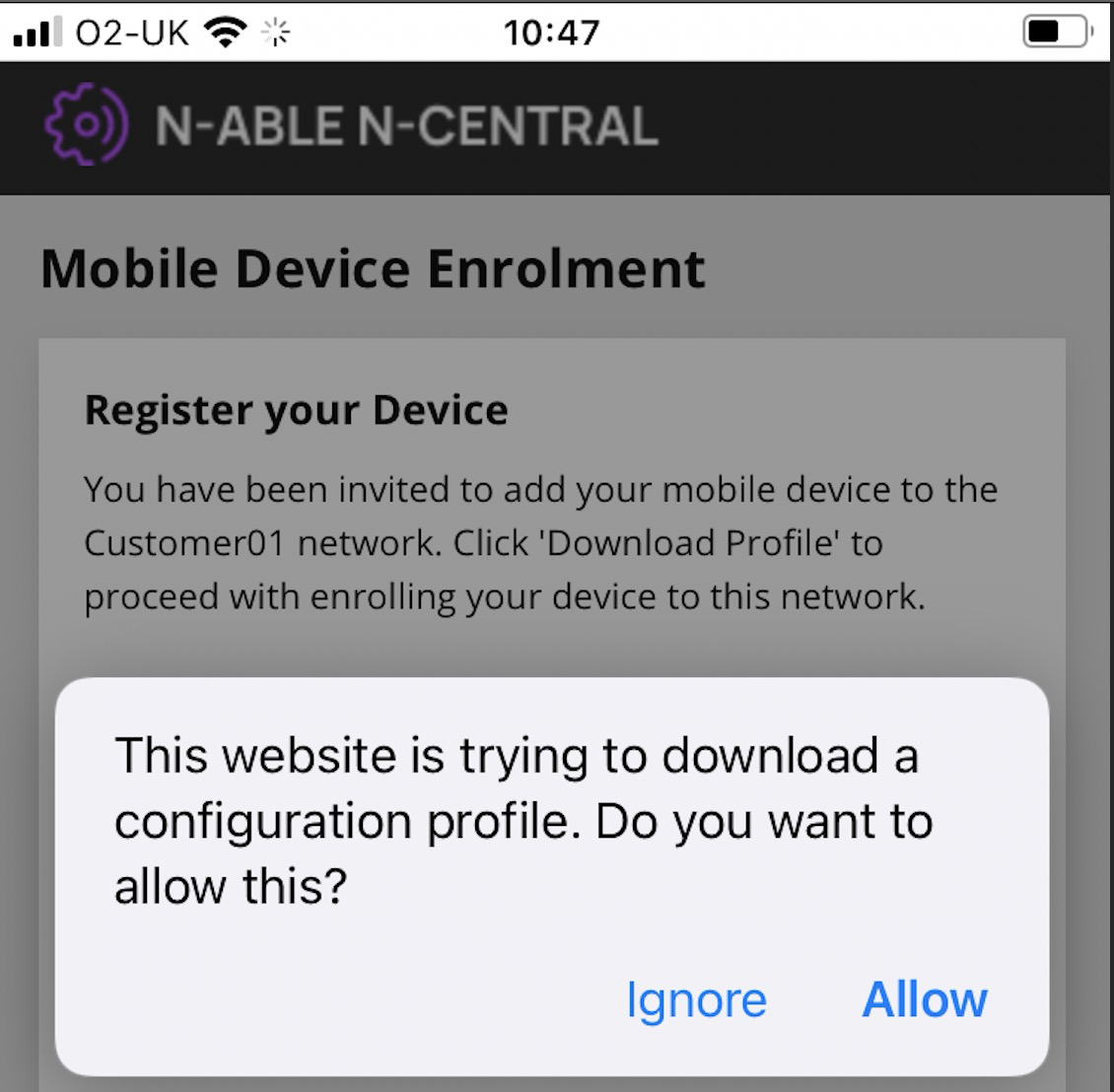 Click Download Profile > Allow to download the Mobile Device Management configuration profile.