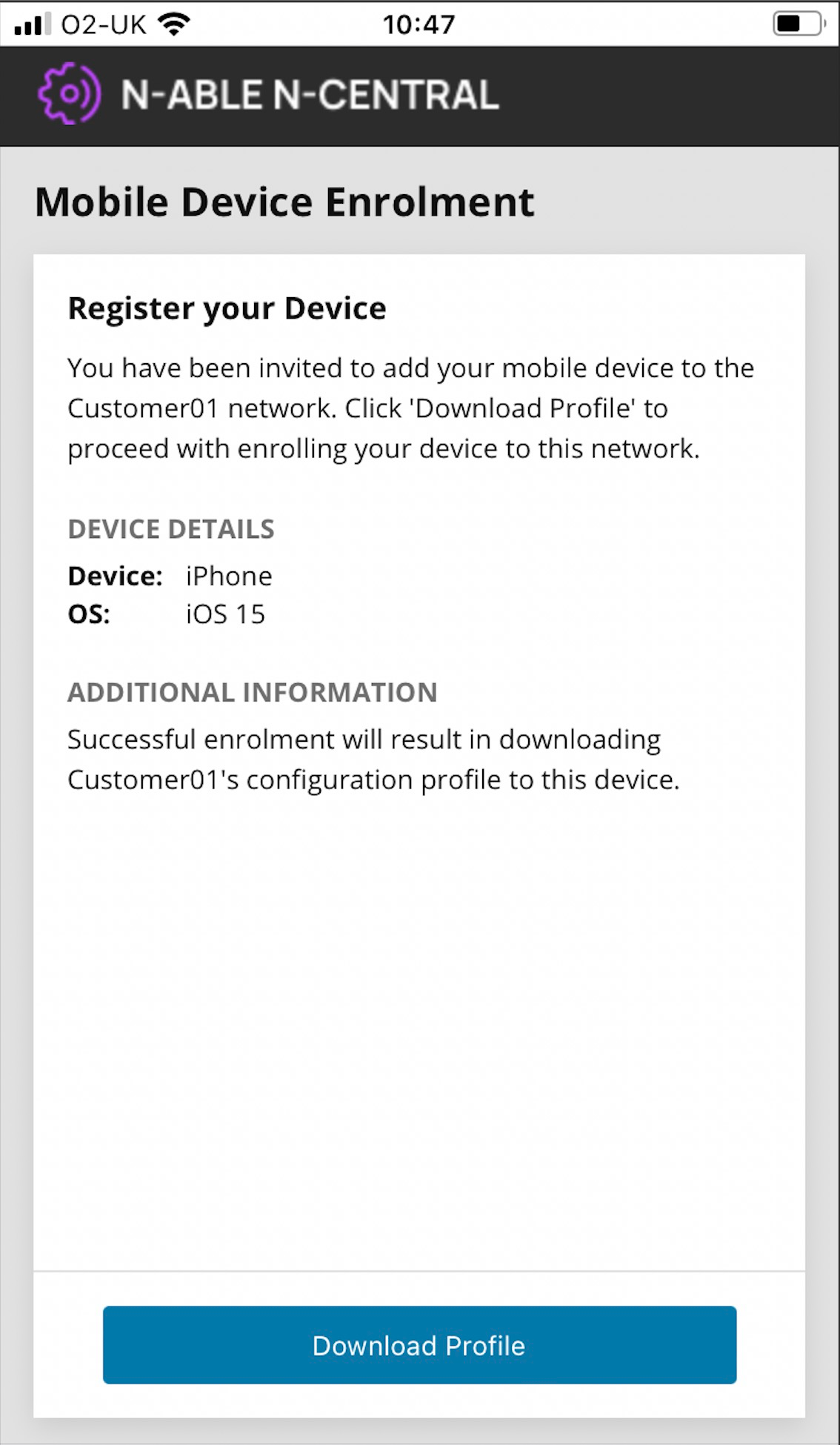 Email recipients will get an email with a link to install a profile. User will need to access the link from a Mobile device.
