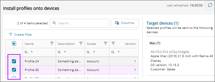 4. Select the checkbox for one or more configuration profile(s) you want to install on the selected devices.