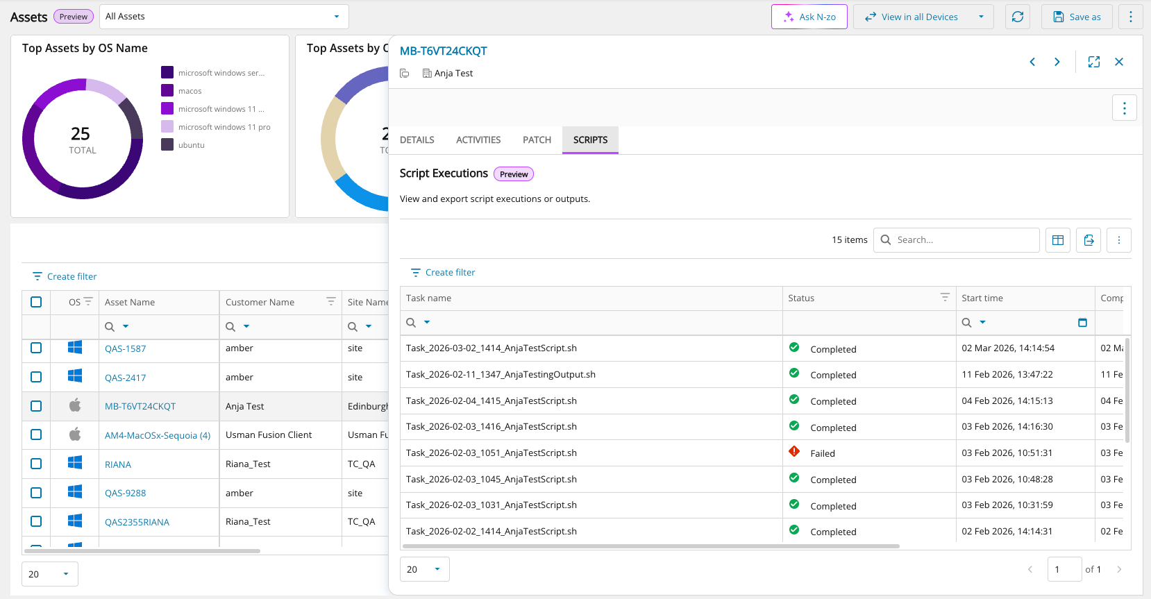 View Task Output: Access execution status, timestamps, and downloadable task output from a dedicated Scripts tab in the Assets view.