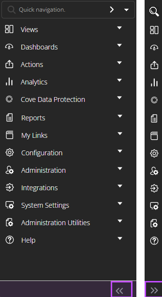 Collapsed sub-menus. Collapse and expand buttons, with collapsed left navigation. |