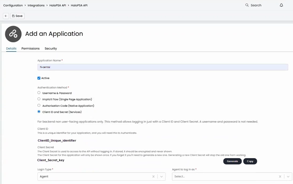 Complete the initial integration steps in HaloPSA before setting up N-central. These steps include configuring application settings, generating credentials, and preparing your environment for integration.