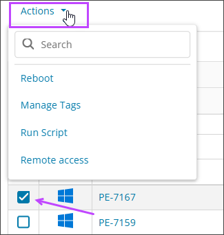 - Select the assets you want to tag, and select Actions > Manage Tags.