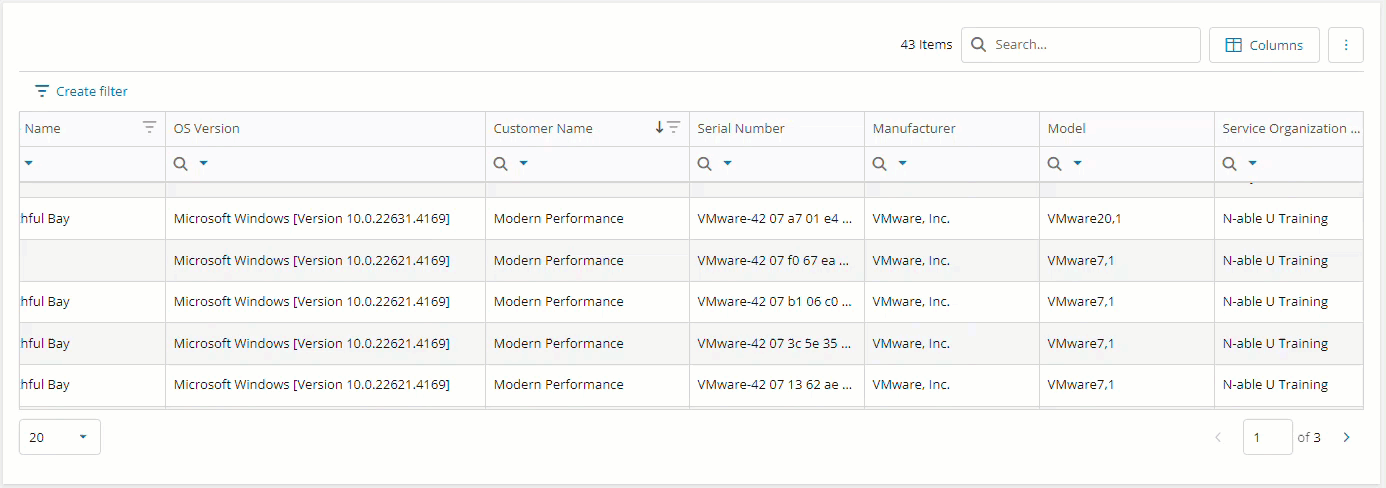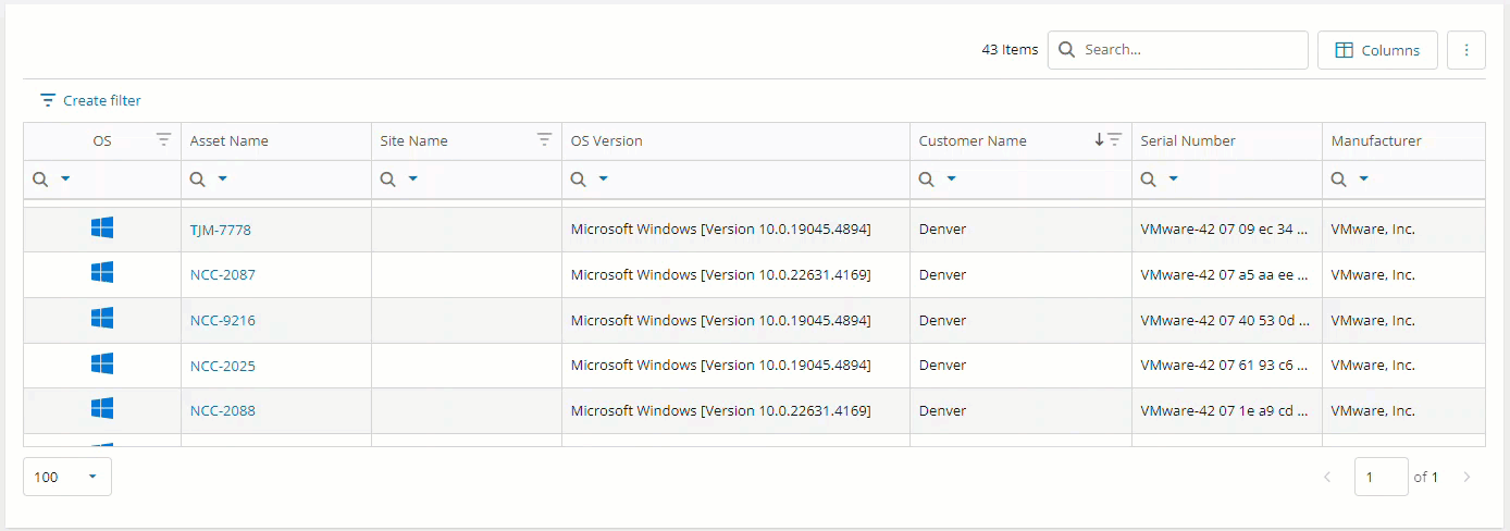 A general search scans the whole table across all columns, which is great when you’re not sure where the data is located. For example, if you type "trn" into the general search box, it displays all the assets that have "trn" in their name.