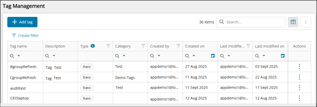 Review the assets list to confirm that the filters return the expected assets. These assets will have the tag assigned. If the results aren’t correct, use the filter builder to adjust the conditions and groups.
