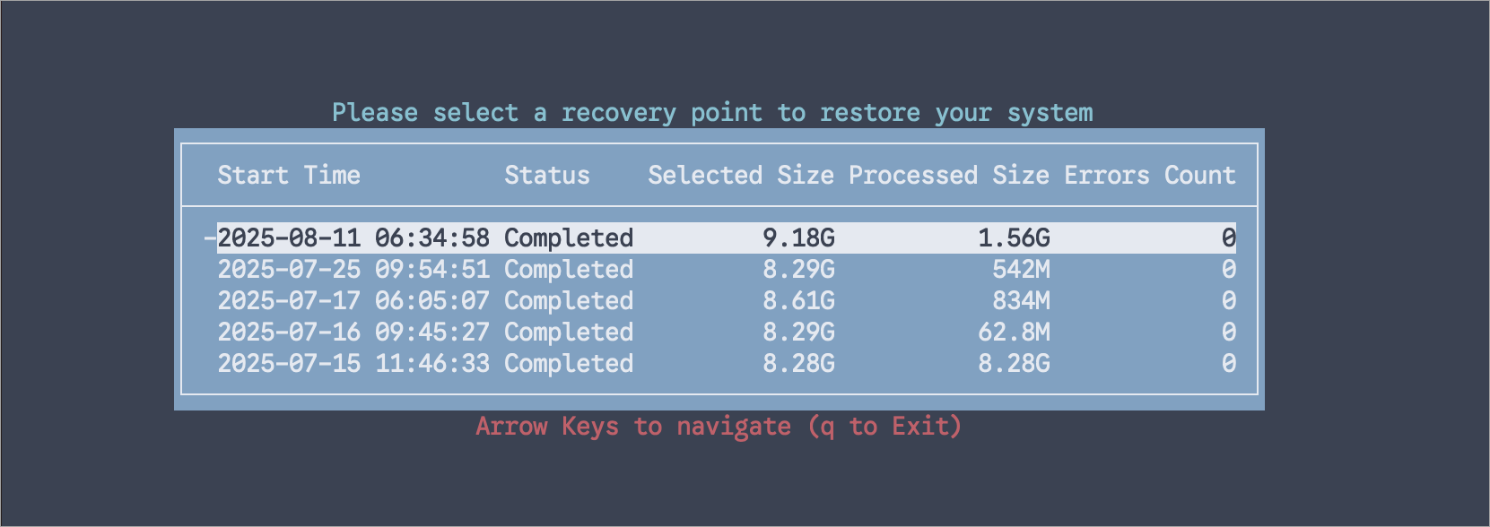 This step is skipped in session-specific rescue images since a recovery point has been selected at their creation time.