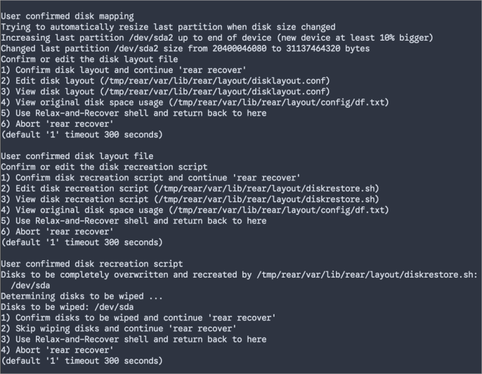 Relax-and-Recover then performs some checks and set up the bootloader.