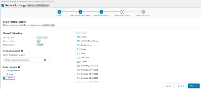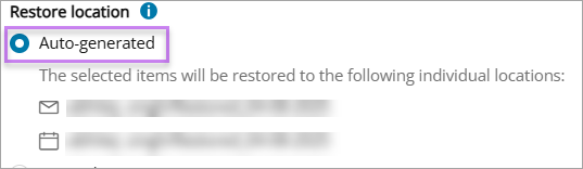 Select the restore location for selection from Auto-generated, Original, or Custom: