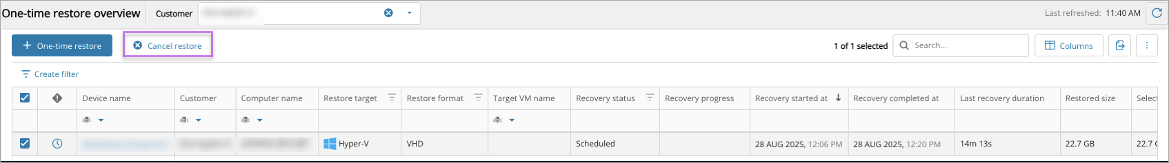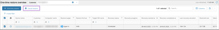 From the One-Time Restore overview, it is possible to cancel any recovery currently in progress: