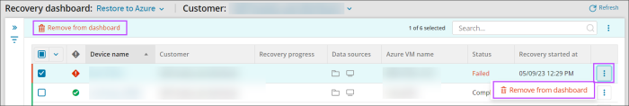 - Select the device(s) using the checkbox to the left of the Device Name and click Remove from Dashboard from the top bar