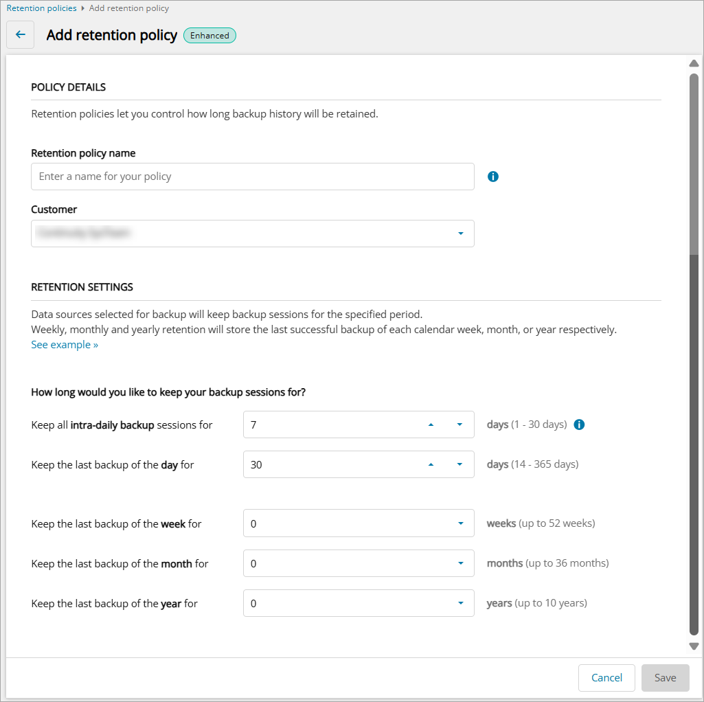 - For Enhanced Retention policies,