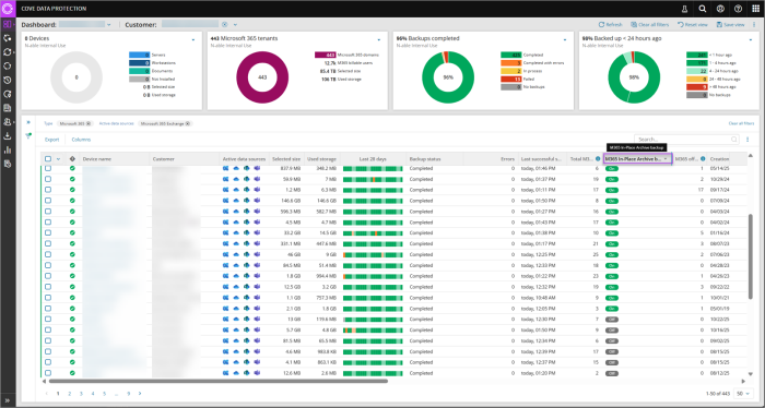Users can view Microsoft 365 backups dashboard by navigating to: Backup dashboard> Microsoft 365 backup