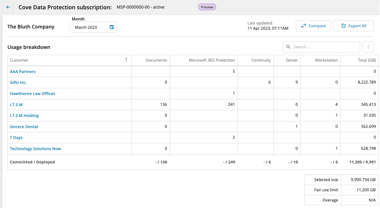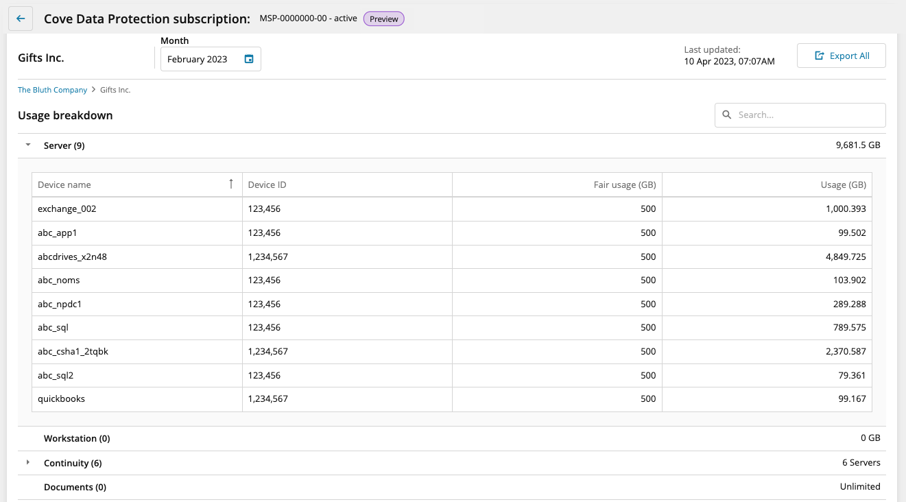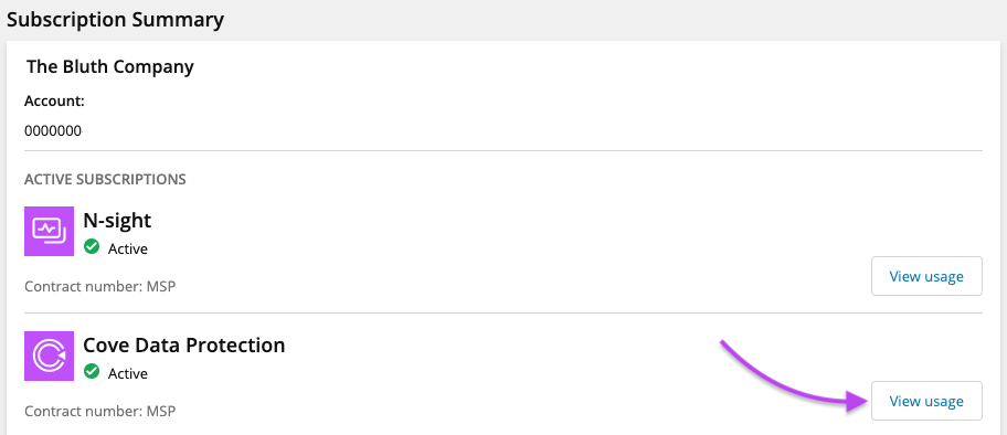 View usage details for Cove Data Protection subscription