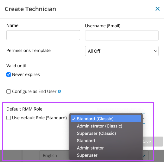 - After syncing the new user, specify that users role in N-sight RMM.