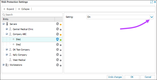 - In the All Devices view, go to Settings > Web Protection > Settings.